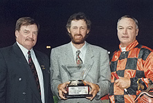 “I'd never won a race until I won the Inter Dominion "- said an elated Brian Hancock allegorically in 1994 after winning the South Australian Cup and quoted by Harry Pearce journalist in the NSW Racing Gazette. At that time Hancock had won the Inter Dominion Grand Final twice – once as a driver on Koala King (1980) and again as a trainer of Thorate (1990). Since then he has won the Inter Dominion Grand Final as the trainer/driver of Weona Warrior (1994) and then three times successively with Our Sir Vancelot (1997-98-99) – the latter being a history making feat not equalled until 2008 when Natalie Rasmussen and Blacks A Fake did likewise. His record of five Championship winning drives still stands.